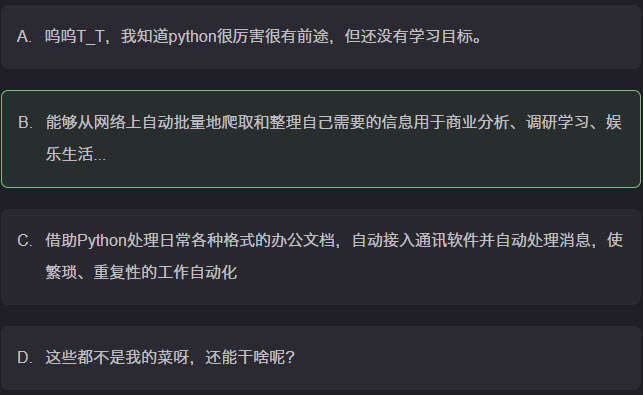 Python就是一个能够帮你实现需求的工具,它更像是一把万能钥匙,决定用它来打开哪一扇门的,是你自己。