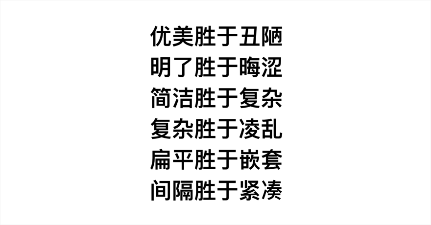 bash:74$ python ~/8ee553dc-5667-473f-8602-60e953e18473/classroom/apps-1-id-5cd9765519bbcf0001554795/74/main.py 优美胜于丑陋 明了胜于晦涩 简洁胜于复杂 复杂胜于凌乱 扁平胜于嵌套 间隔胜于紧湊