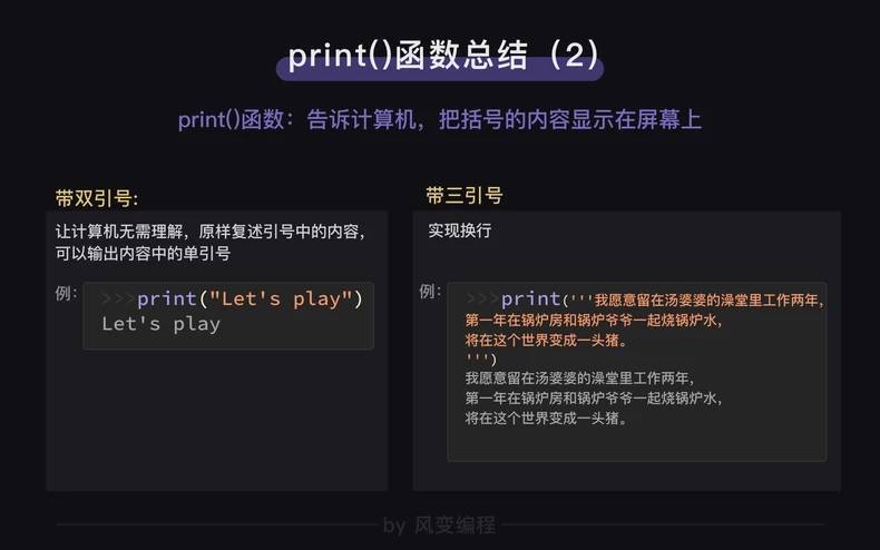 回到print()函数,在print("Let's play")中,没有被打印出来的引号就属于print()函数结构啦。