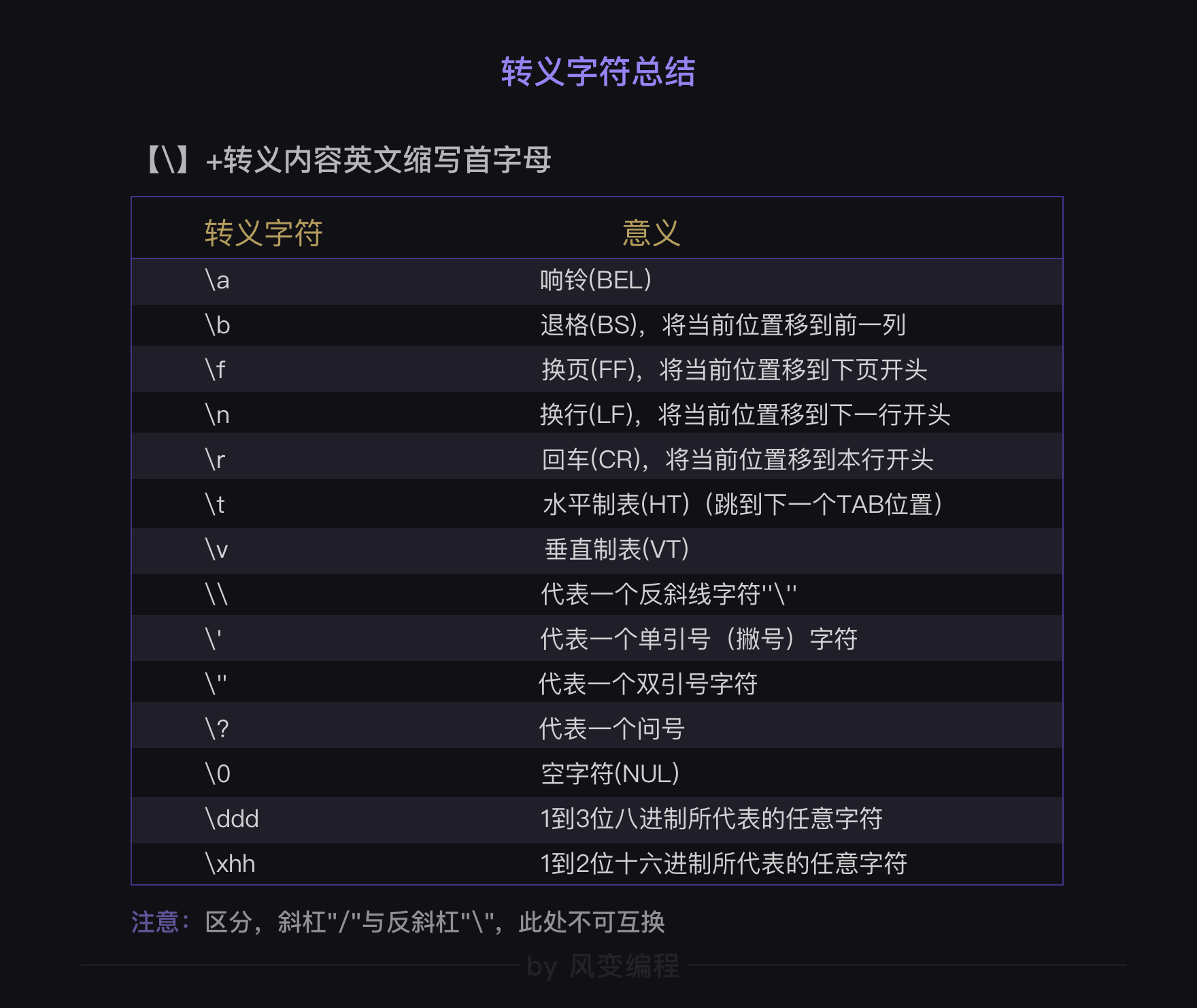 别担心,这张图上的内容你不需要背下来,先通过截屏或拍照方式把图片保存下来,以后要使用转义字符时再看图查找就好。