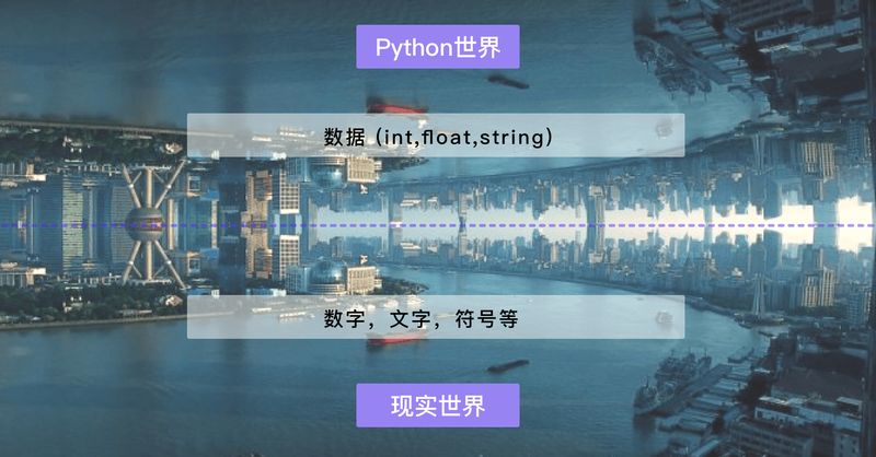 其实呀,python世界可以看作部分现实世界的【镜像】,部分现实世界的东西、概念都可在python世界里找到对应,比如:现实世界中最常见的数字,文字,符号在Python世界就是:【数据】。