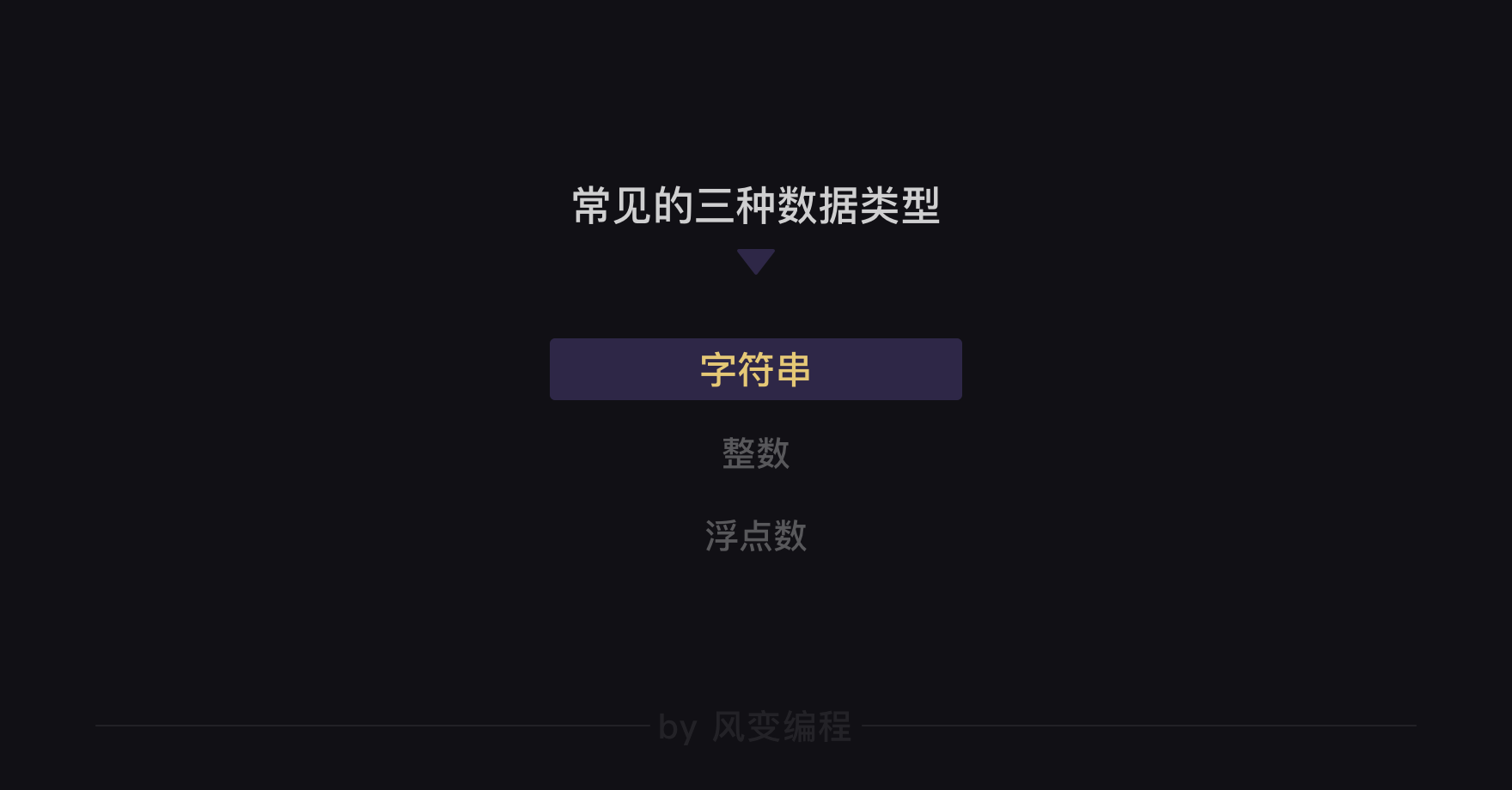 以上,就是我们最常接触的三种数据类型:字符串、整数、浮点数的全部内容了。
