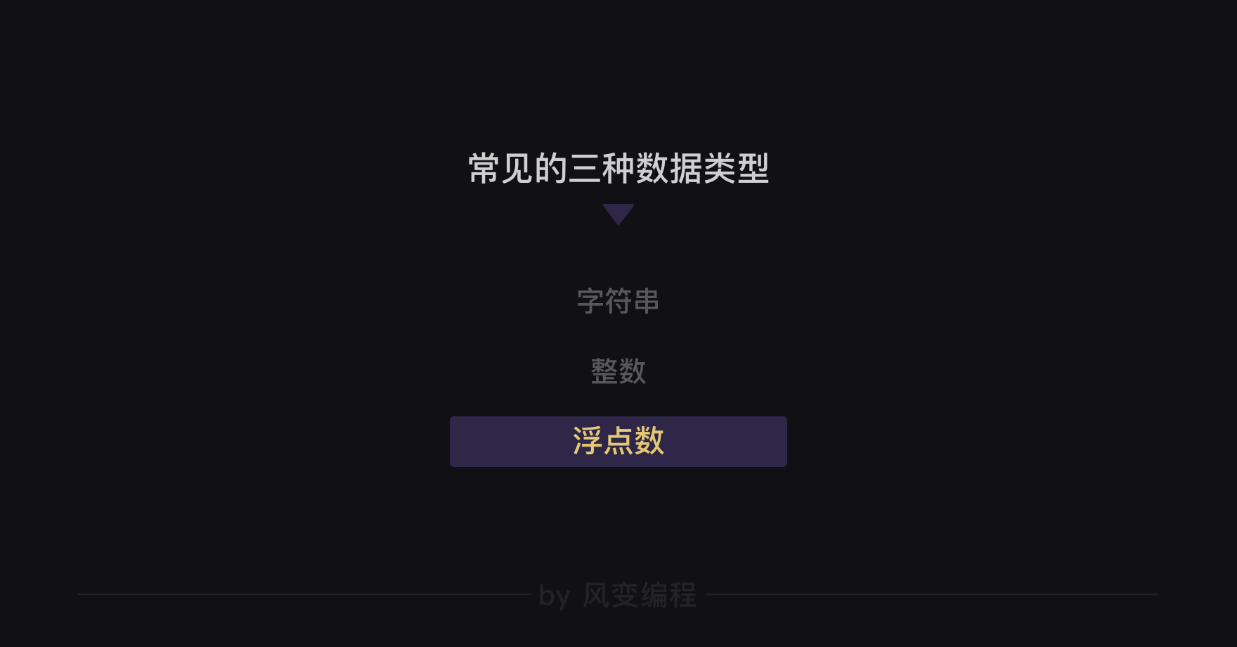 那数学意义上的小数在python中怎么表示呢?它就是我们常见三种数据类型中的最后一种:【浮点数】。
