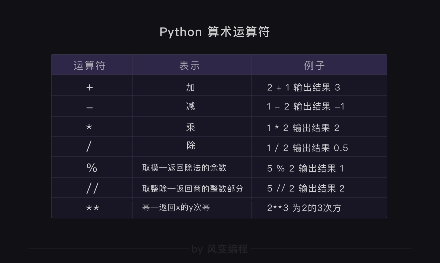但是Python世界的算数运算符,和我们平时在纸上写的运算符号有相同点,也有不同点。