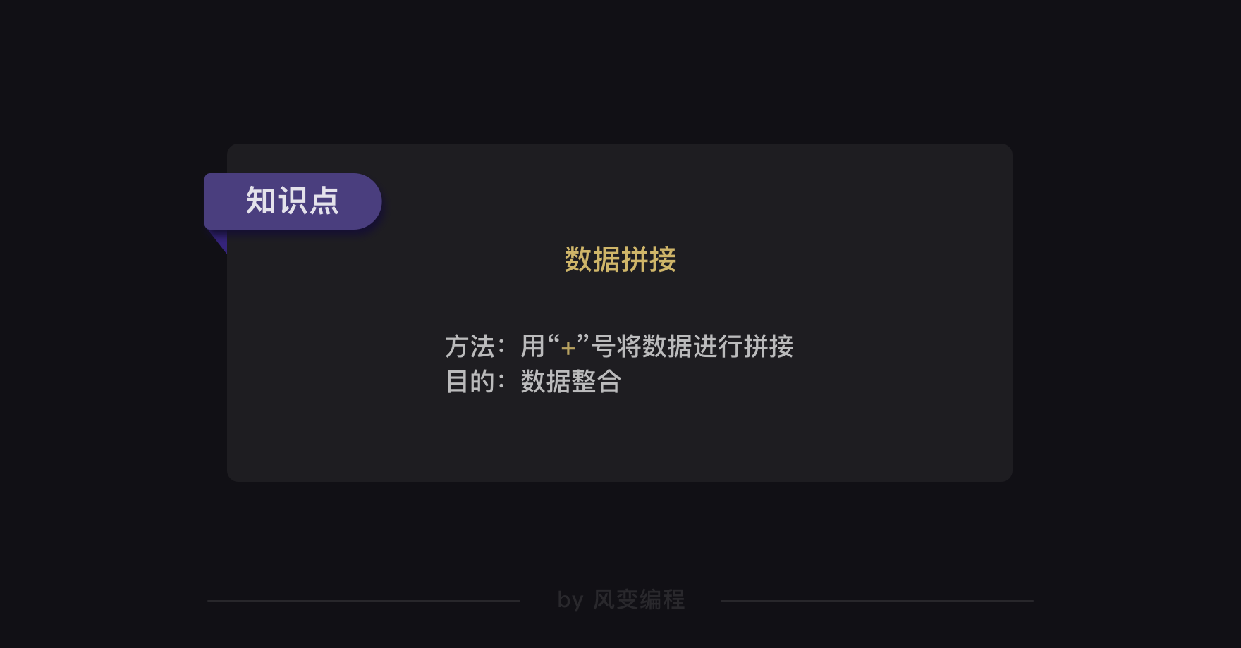 学会了字符串拼接,就能让我们的数据整合更为灵活,组合出任意我们想要的内容。
