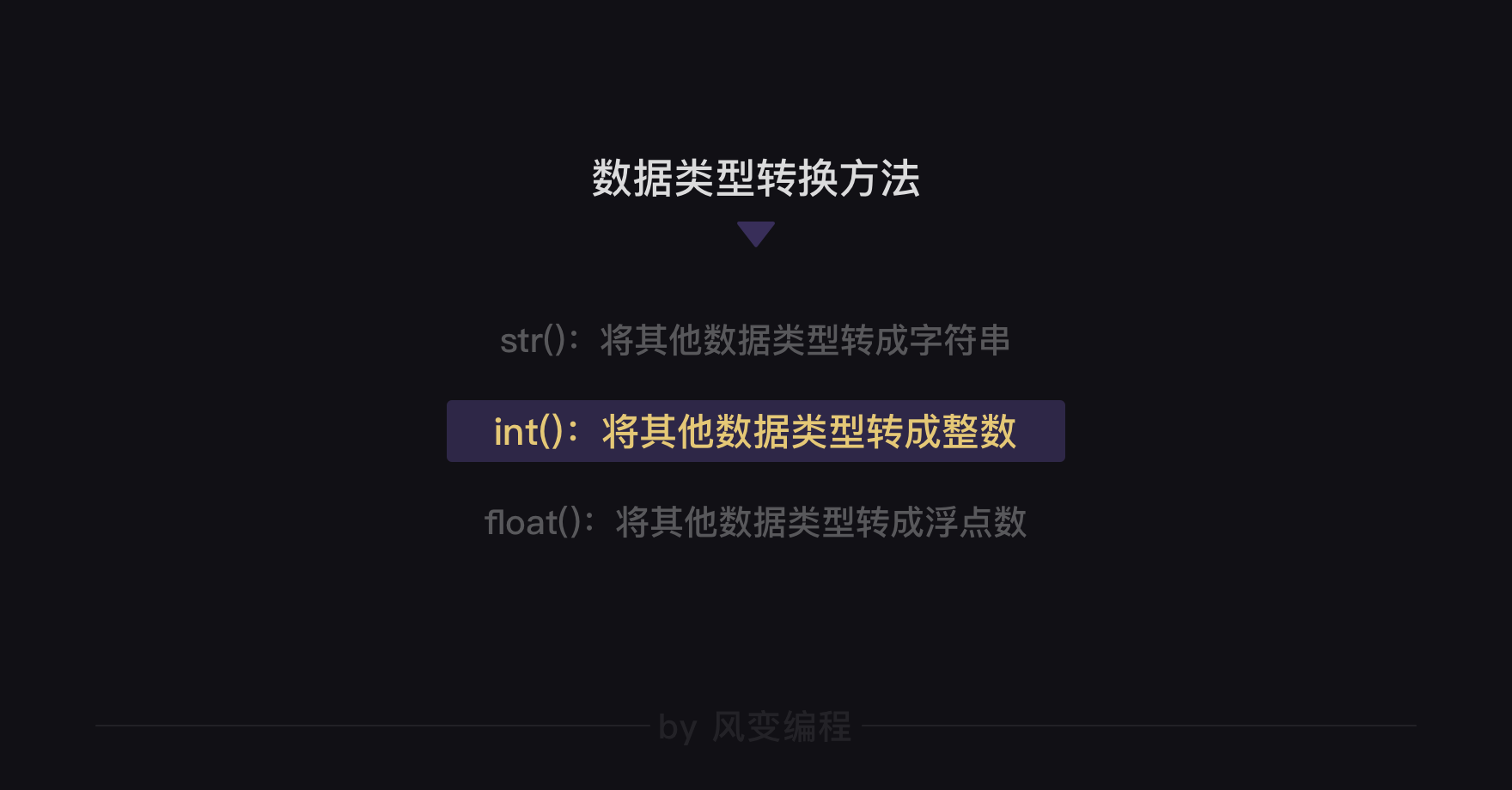 不过对于int()函数的使用,大家要注意一点:只有符合整数规范的字符串类数据,才能被int()强制转换。