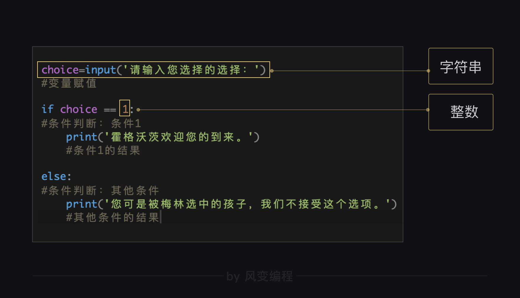 现在,我们确定了变量choice的数据类型是字符串。下面,我们再来看后面的代码。