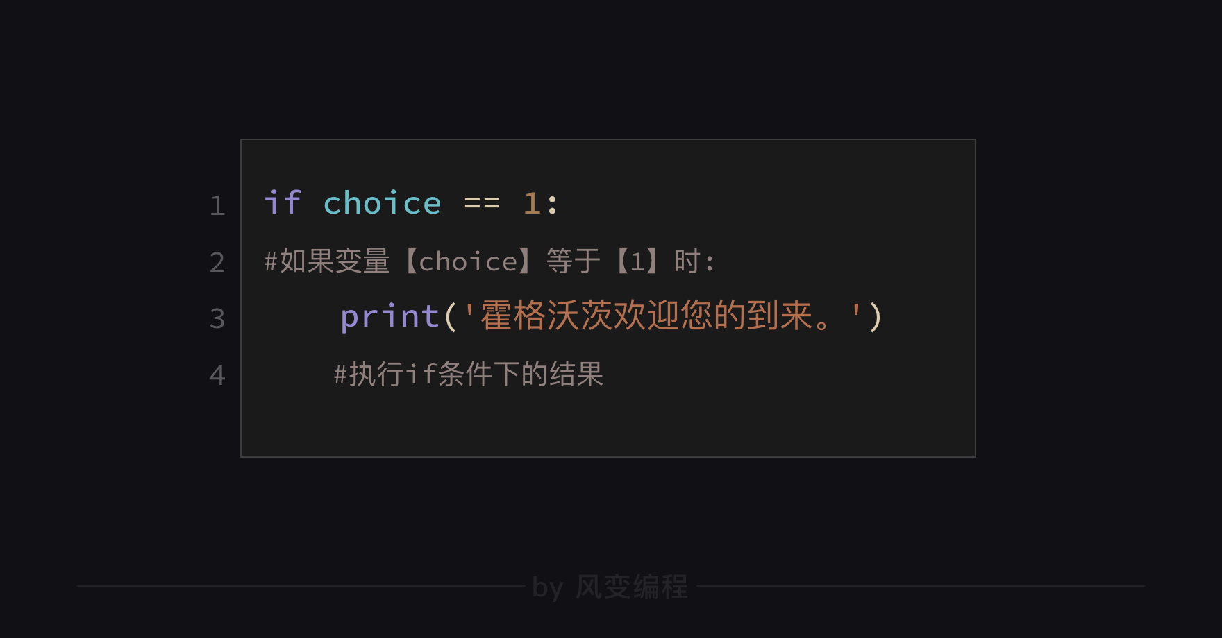 根据第2关所学的条件判断知识,我们可以将第一行的if条件解释为:如果变量choice等于整数1时,则执行此if条件下的结果。