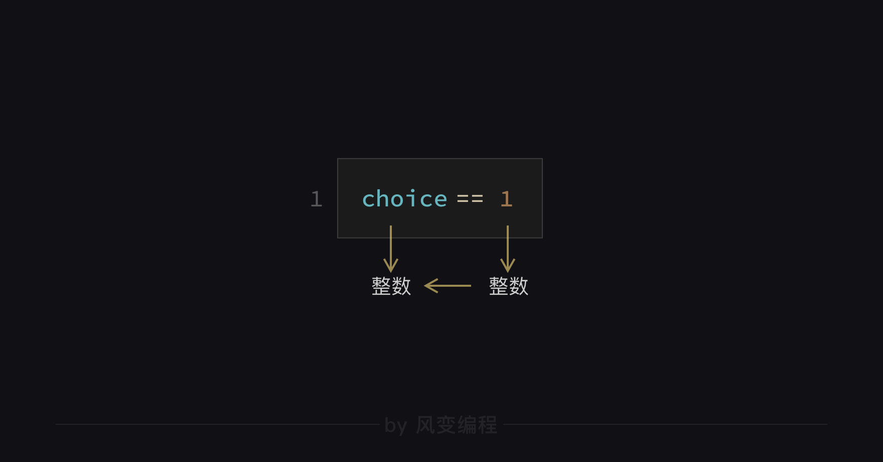 在第一次变量赋值时,input()函数的输入值是字符串,'1'也是字符串;但是到了if条件判断时,if的条件变成了【choice == 1】—— 1没有了引号是个整数类型。