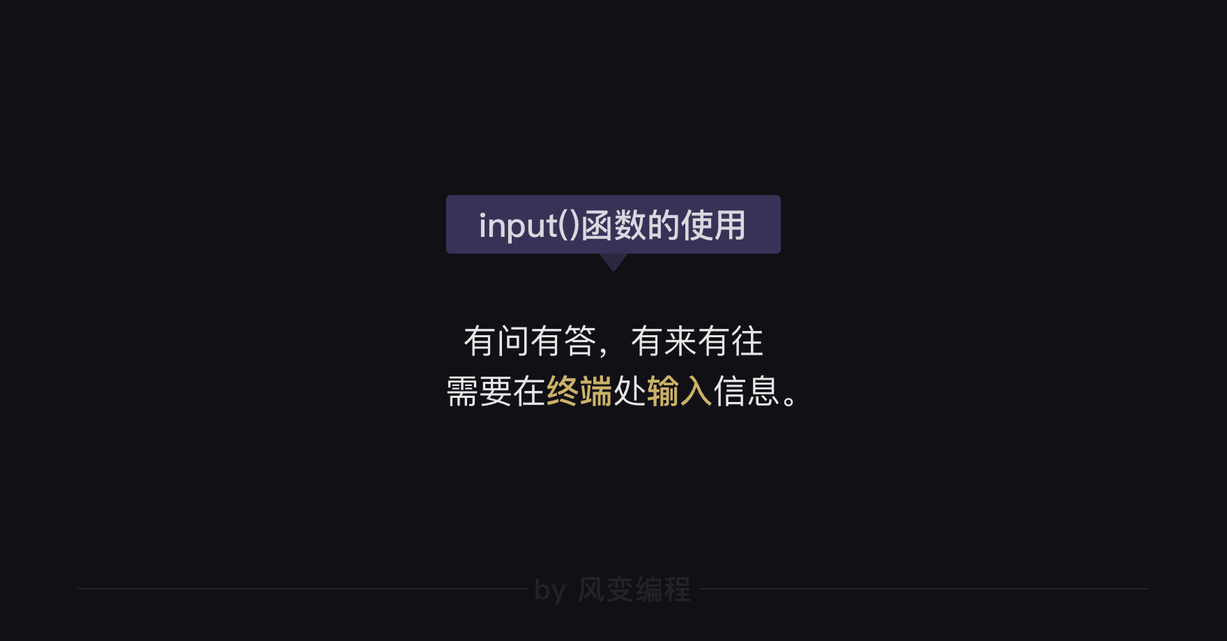 当问题从代码世界传递给我们,可我们却没有回答时,这扇等待输入的input()大门,就会一直处于敞开状态,一直等着你往里送回答。