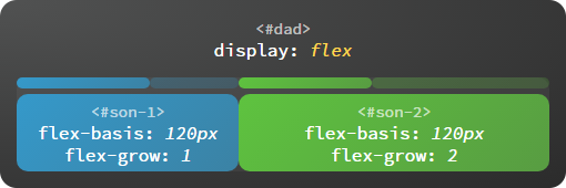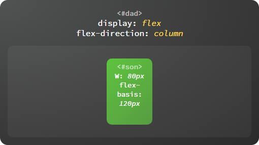 code>flex-basis 表示在不伸缩的情况下子容器的原始尺寸。主轴为横向时代表宽度,主轴为纵向时代表高度。