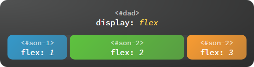 子容器是有弹性的(flex 即弹性),它们会自动填充剩余空间,子容器的伸缩比例由 flex 属性确定。