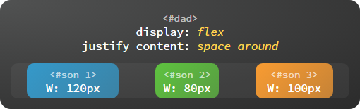 strong>space-around:等边距均匀分布