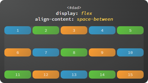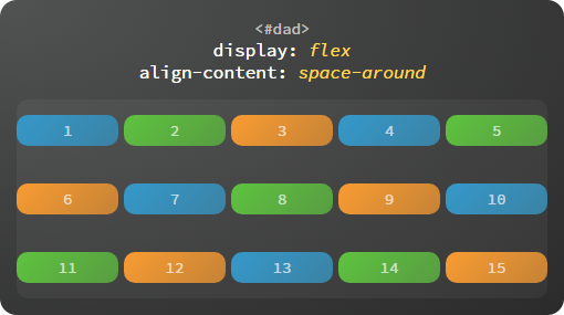 当子容器多行排列时,设置行与行之间的对齐方式。