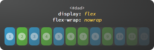 说来也不难,flex 的核心的概念就是 容器 和 轴。容器包括外层的 父容器 和内层的 子容器,轴包括 主轴 和 交叉轴,可以说 flex 布局的全部特性都构建在这两个概念上。flex 布局涉及到 12 个 CSS 属性(不含 display: flex),其中父容器、子容器各 6 个。不过常用的属性只有 4 个,父容器、子容器各 2 个,我们就先从常用的说起吧。
