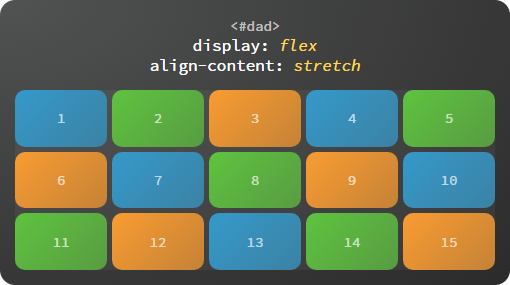 strong>stretch:子容器沿交叉轴方向的尺寸拉伸至与父容器一致。