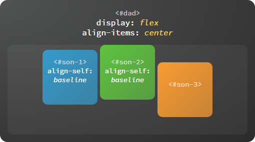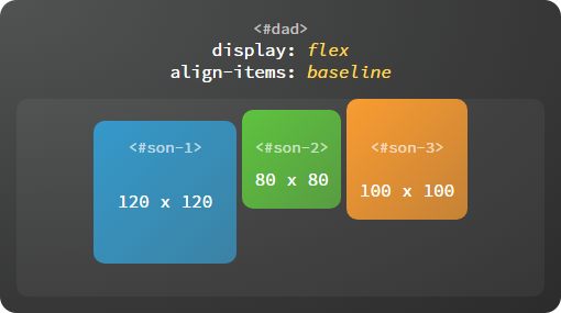 baseline默认是指首行文字,即first baseline,所有子容器向基线对齐,交叉轴起点到元素基线距离最大的子容器将会与交叉轴起始端相切以确定基线。