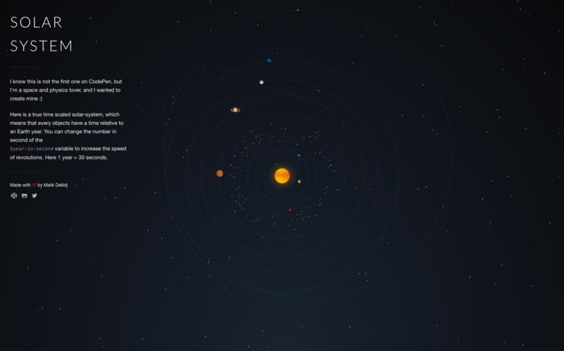 哇! 如果你喜欢太空,一定会被这个用 CSS 实现的的太阳系动画效果所震撼。 这不仅仅是一个漂亮的动画; 相对于真实的地球年,每个行星都能准确地围绕太阳旋转。