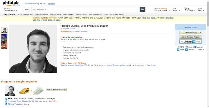 不知道大家有没有看到过这个新闻,这个国外小哥是亚马逊的粉丝,为了应聘,把自己的简历做成了高仿亚马逊的网页。这里附上链接https://phildub.com/,大家可以去观摩学习一下。