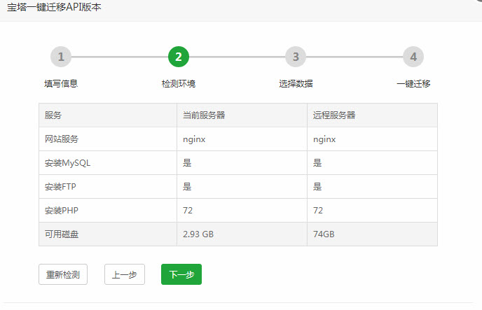 首先要给新的服务器安装上和旧服务器一样的宝塔环境,包括php版本、mysql版本,这样能避免网站数据出错。