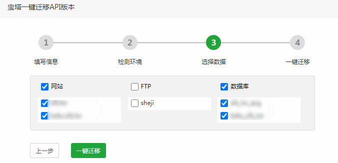 然后会让你选择要迁移的网站和数据库。按照要求打钩即可。