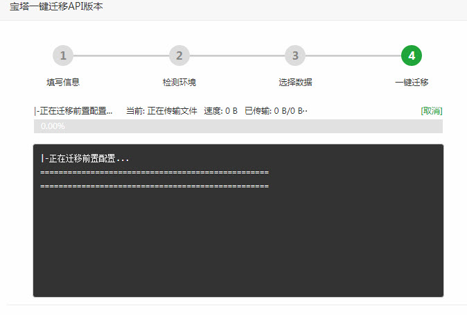 然后在发送数据服务器上安装一键迁移工具,填写接收数据服务器信息,包括秘钥,就可以开始自动迁移了。