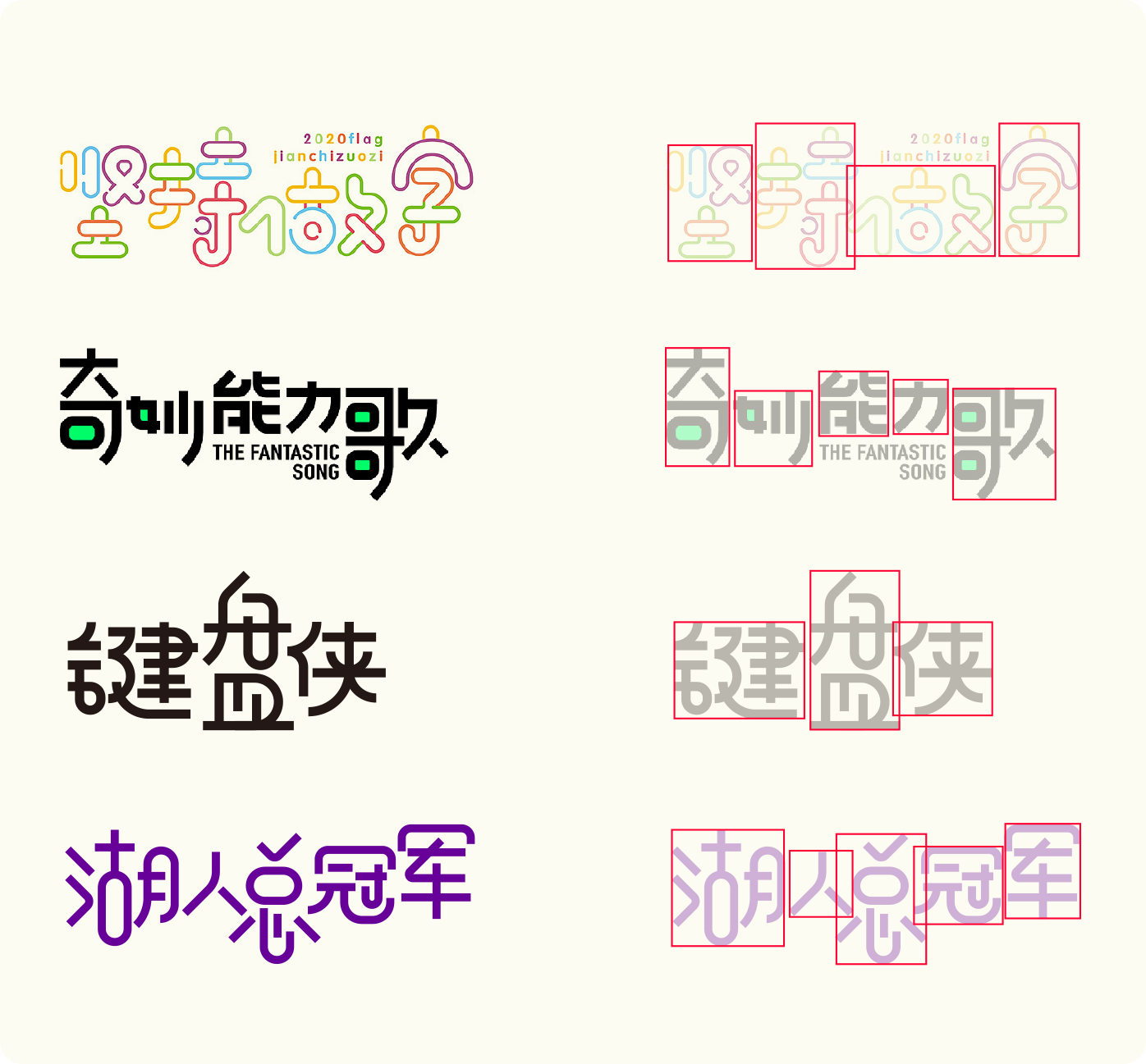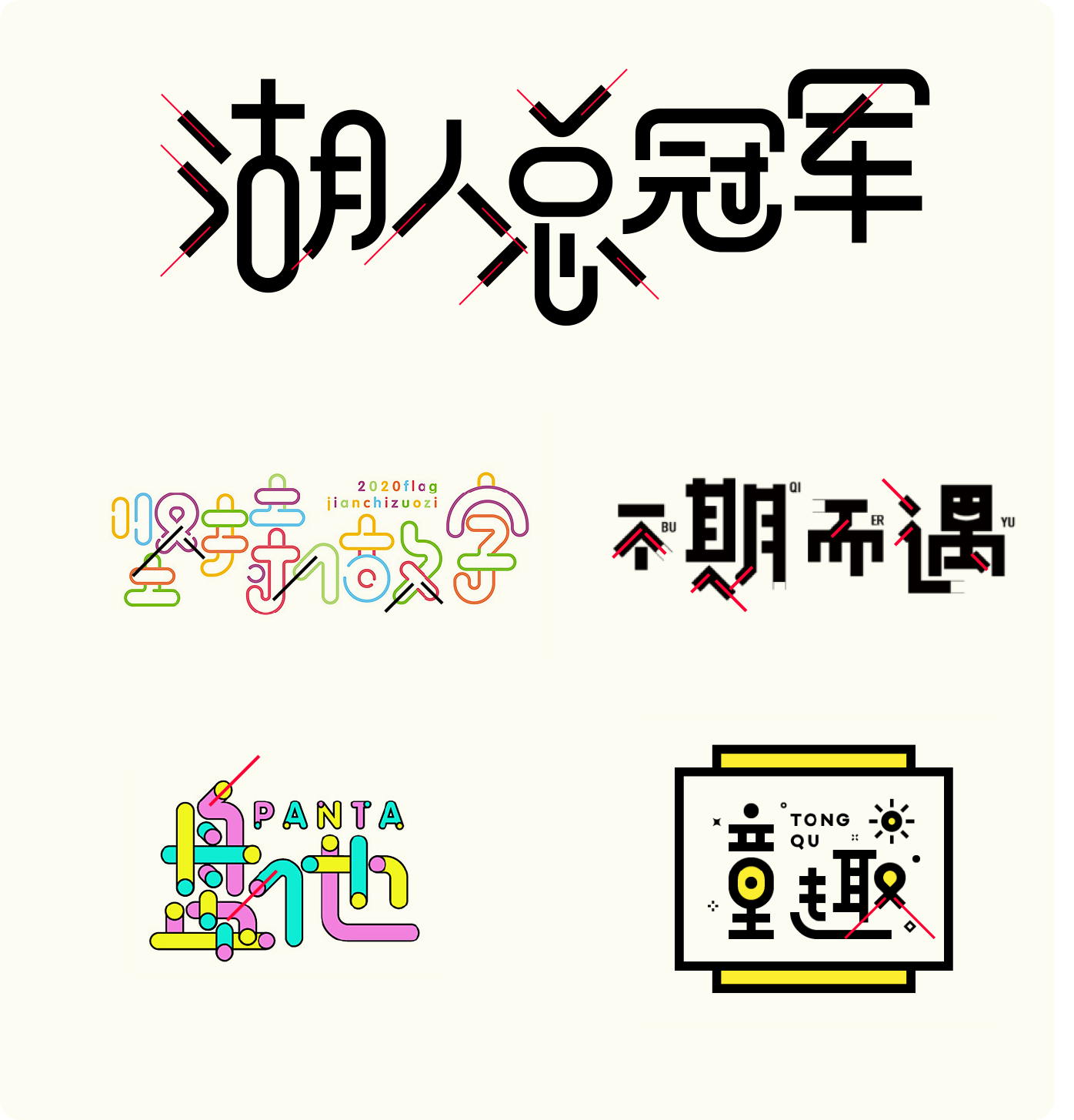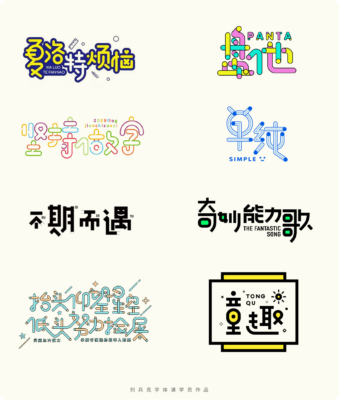 这些作品,字体风格比较活泼俏皮,有鲜明的个性和趣味性,如果能够学会并熟练掌握,几分钟就可以做出一例很好的字体出来!