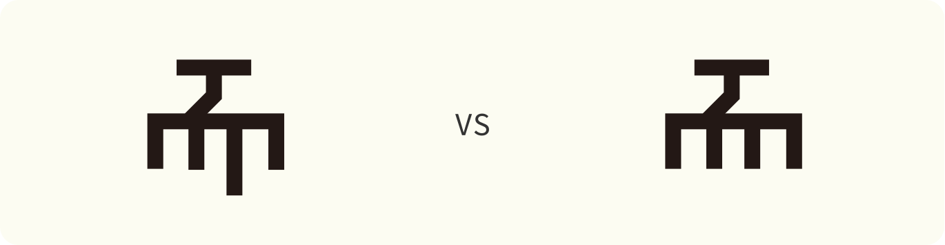 这样的对比,其实结果很明显了,右边的笔画组合是非常别扭、非常不协调的。