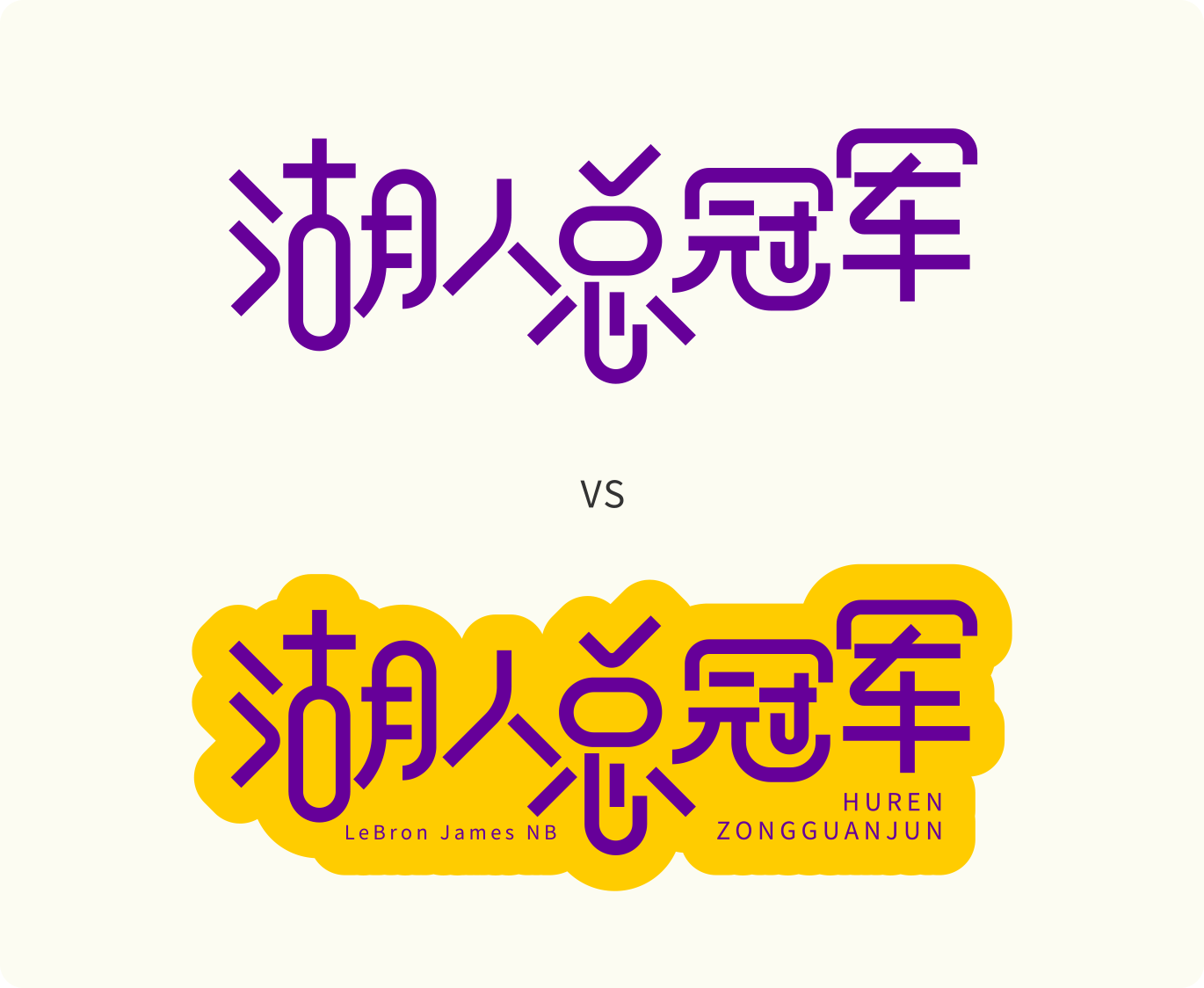 上面,是单纯的字体,下面,在中文底部加入了拼音和英文,外围做了黄色描边。这些内容的添加,使得整组设计更加完整,更像一个成品。
