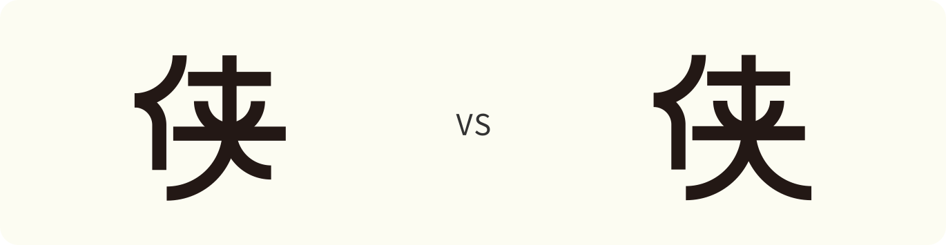 通过以上对比,我们是可以看到的,左边的“侠”,更加灵活,显得调皮一些,而右边的“侠”,则是拘谨了很多,少了一些灵气。