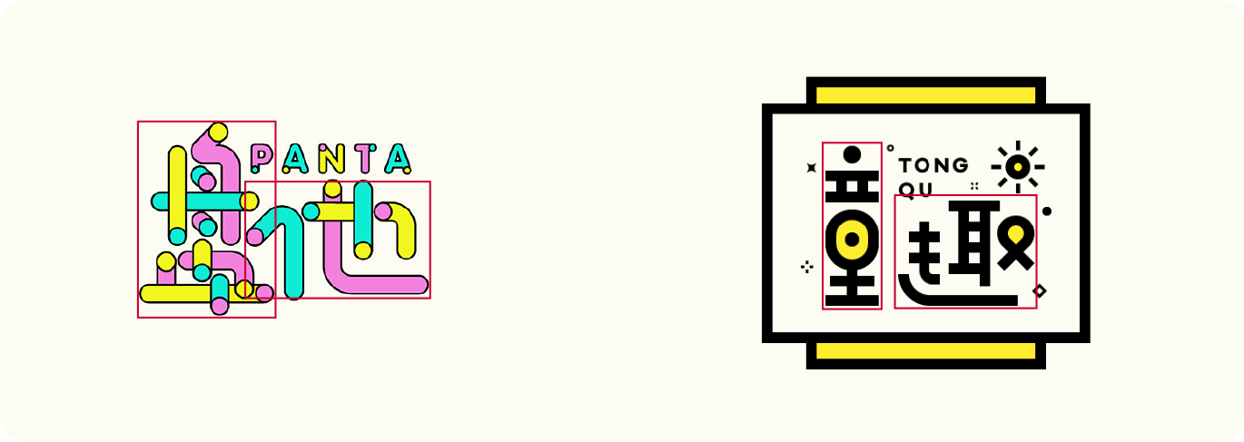 再回到教程开始的举例中来,几乎每个字都保持了这样的规律,比如“童趣”和“盘他”这两例: