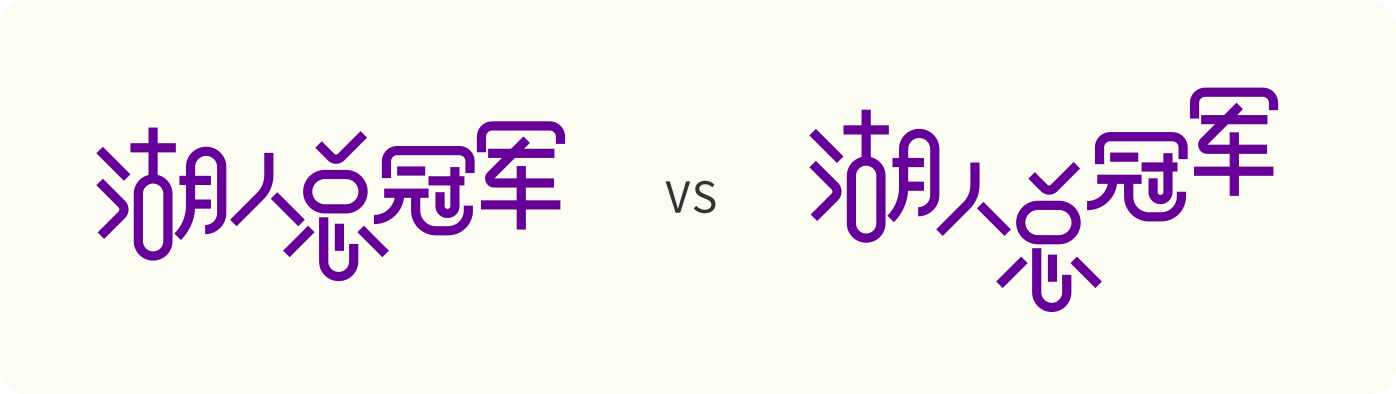 我们平时做字时,往往是设计“方块字”,字体比例要严格控制,不能忽大忽小忽高忽低,在调整字体比例的过程中,有很多细节是比较费时的,比如字体结构的调整、字体重心的调整、笔画位置的调整……如果做字经验不足或出现失误,字和字之间就容易不协调,某个字或某个笔画就影响了整组字的设计质量。