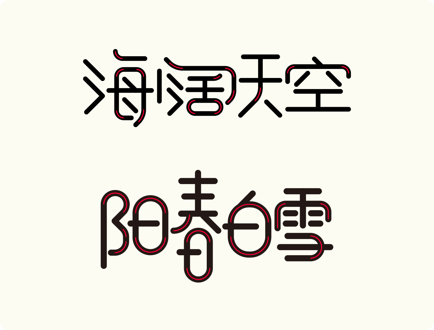 这五大规律,也可以看作是此类字形的基础方法,我们在设计字体时,并不是非得把5个方法全部用上,要根据具体情况灵活应对。