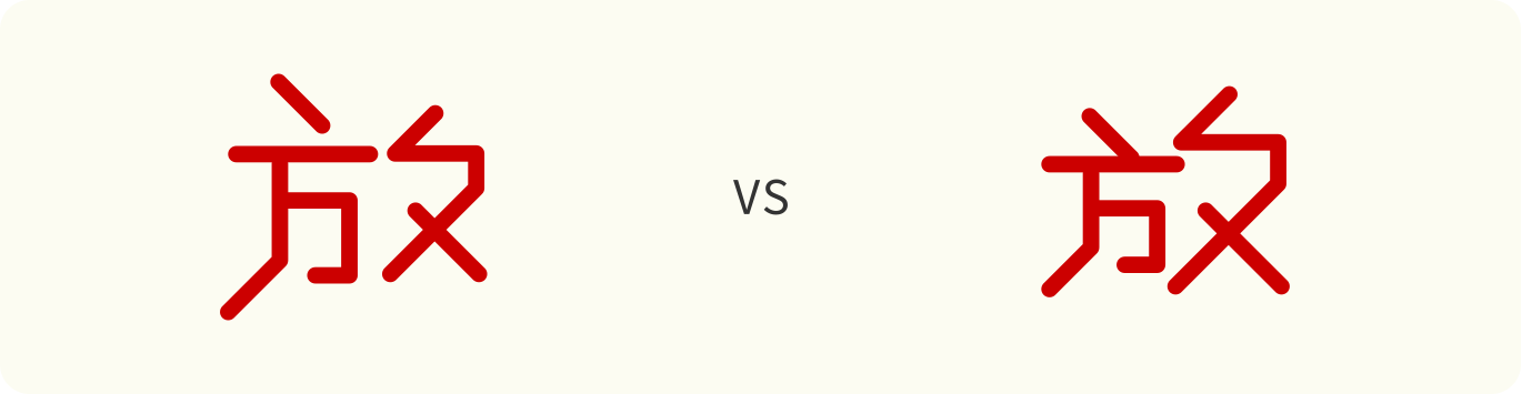比如,我们做一个“放”字出来,这个字左右两侧的笔画占比是基本均等的: