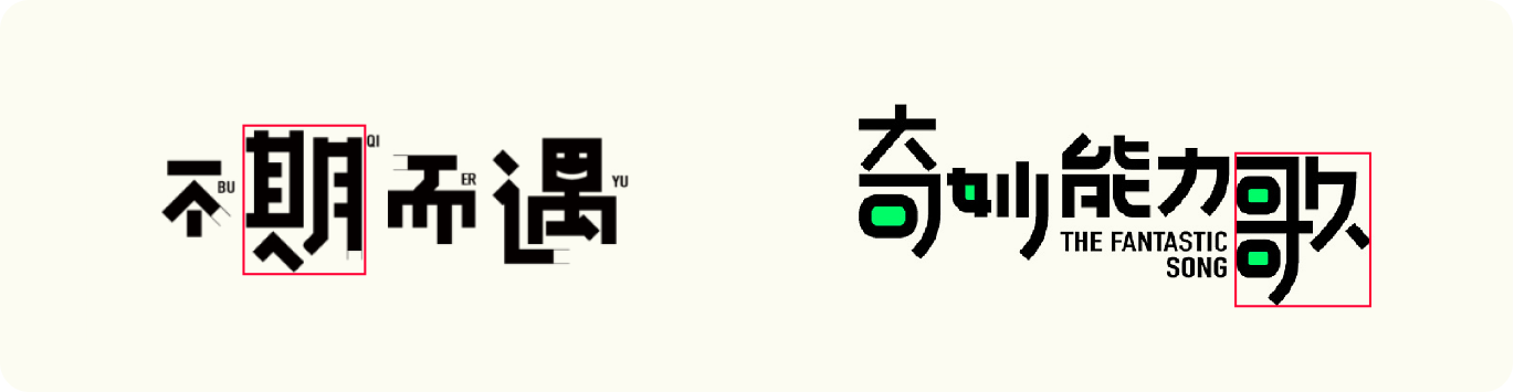 在上图中,“期”字和“歌”字,跟之前的恰好相反,是“左大右小”……