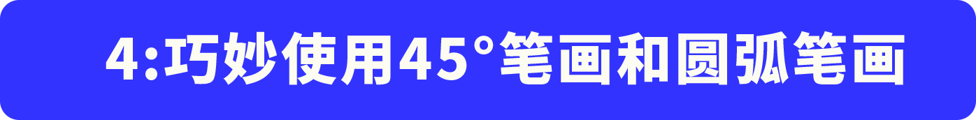无论是45°笔画,还是圆弧笔画,设计的时候都很方便,设计效率会很高,换句话说,我们不是不能设计非45°的笔画和非圆弧笔画,只是45°笔画和圆弧笔画更容易实现,做字速度更快一些。