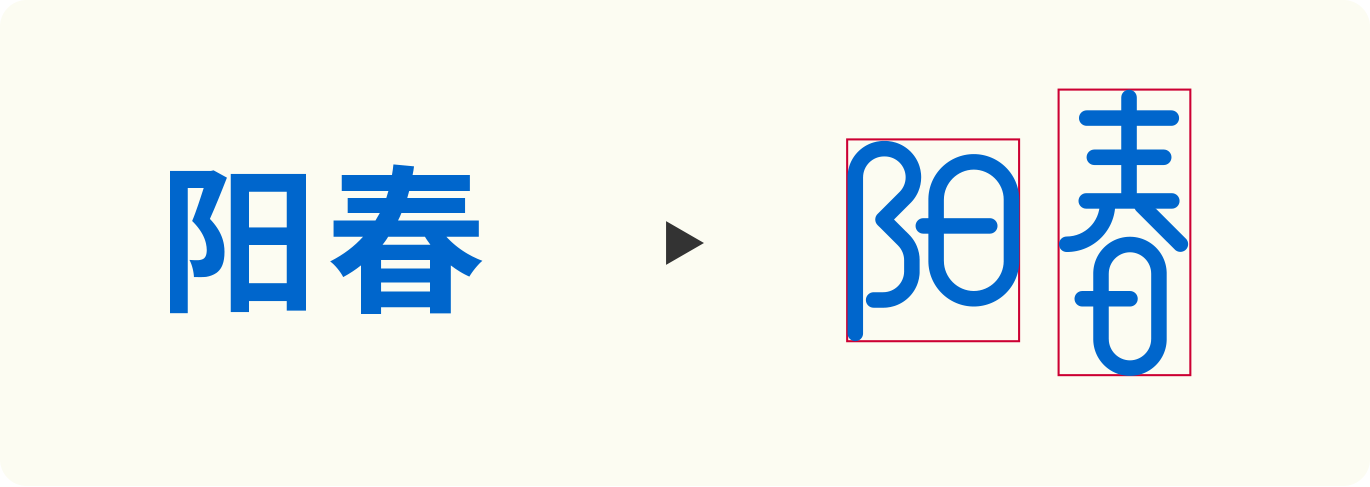 这两例字体中,“阳春白雪”四个字中,“春”字是上下结构,“阳”字是左右结构,所以,在设计时,他们的比例就可以有明显区分: