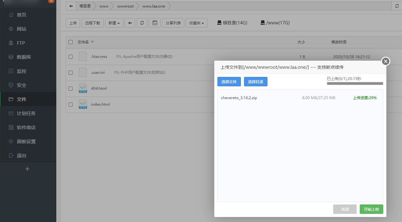 然后上传下载到的安装包,上传到网站根目录,并解压。