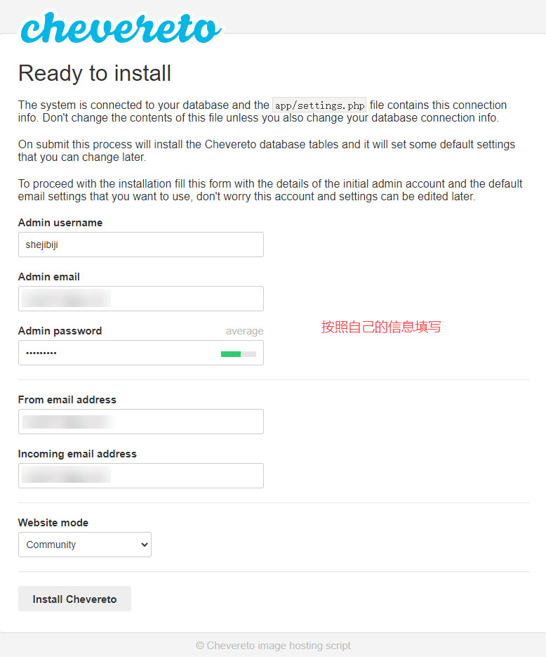 用域名解析到这个网站,然后用域名访问这个网站,开始chevereto图床程序的安装。