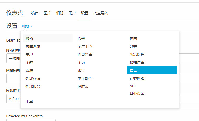 成功后可以更改网站语言,登陆后在仪表盘进行更改。