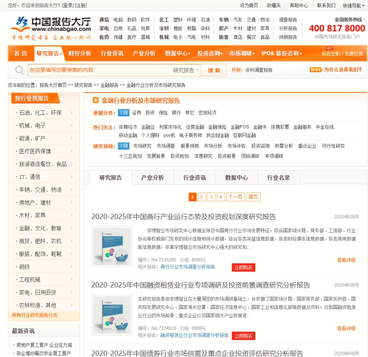 上至高科技电子设备,下至比较基础的农林牧渔业,你都能在上面找到相关的报告。还可以进行报告定制哦!