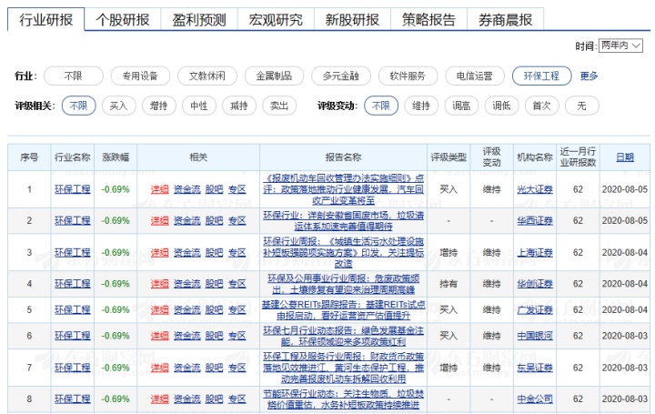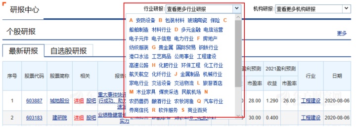 ❶ 在右上角「研报」-「行业」里面找到各行各业的研究报告。