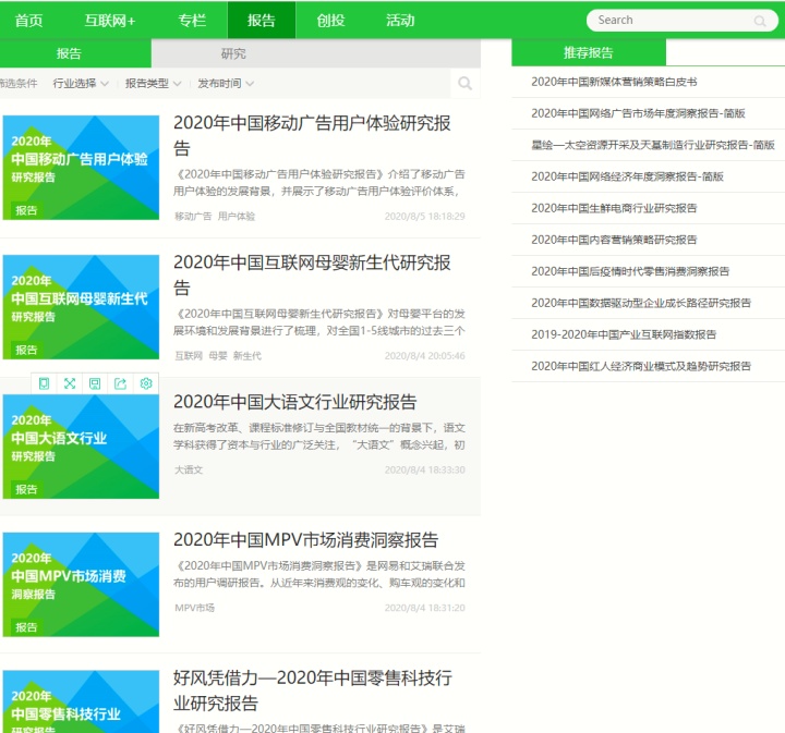 可别小看它,里面的报告非常齐全,就连新兴的小众行业报告也可以在里面找到!