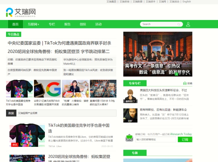 互联网领域另一个必看网站是艾瑞网,从「互联网+」这个单独的标签中就可以发现,互联网是他们家的心头肉。