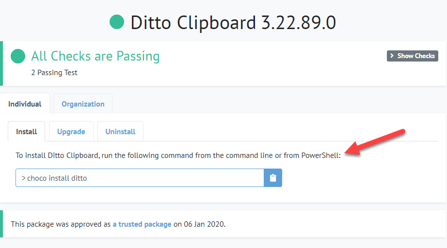 看看这使用说明:安装本软件只需要在命令行中输入 >choco install ditto