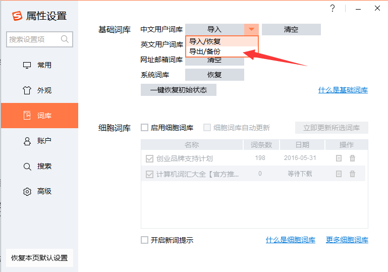 1)首先需要将搜狗输入法的词库导出!